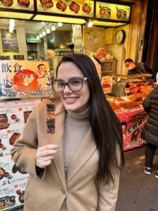 Agora para os amantes de uma boa gastronomia fresquinha, o Tsukiji é a opção certeira. Próximo de Ginza, ele costuma abrir por volta das 7hrs da manhã e já ter fila, então se prepare, mas com certeza vale a ida. Nele você encontra de frutos do mar a doces e uma grande variedade de petiscos da região. Uma ótima opção de café da manhã.