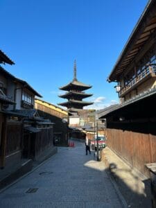 Para finalizar o dia, que tal conhecer um pouco do centro de Kyoto? Bem pertinho do Yasaka Shrine já existe uma rua bastante movimentada e com várias opções de comida e lojas, mas se prepare pois as opções são grandes e a rua é bemmm grande. Não deixe de explorar os becos das ruas.