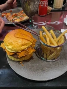 Na parte da noite, fomos jantar em uma hamburgueria inspirada nos filmes de Harry Potter, chamada varinha quebrada. A comida estava bem gostosa e claro que não poderíamos deixar de provar a famosa cerveja amanteigada (sem álcool).
