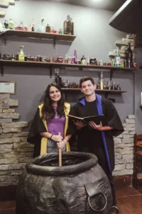 Todas as noites há uma apresentação de “magia” feita pelos funcionários do restaurante. Para completar, há ainda um espaço super divertido para vocês tirarem várias fotos como bruxos e bruxas.